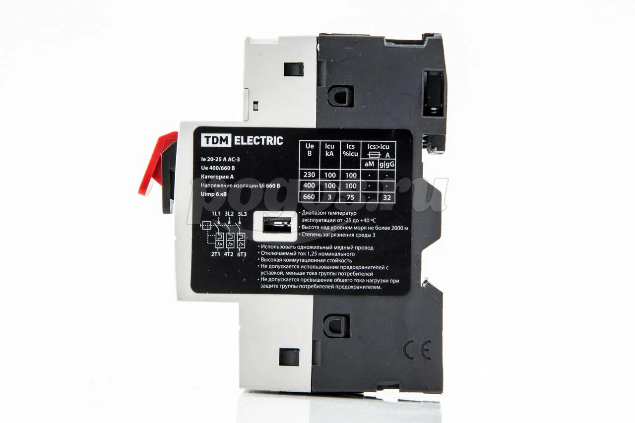 Пускатель TDM ПРК32-25 SQ0212-0014 может использоваться в строительных и промышленных зонах с целью эффективной защиты нагрузки и электродвигателей. Оперативно прекращает подачу тока в случае коротких замыканий, перегрузок и обрыва фазы. Рабочее напряжение - 230/400 В с частотой 50 Гц. Данный аппарат является как автоматическим выключателем, так и тепловым реле перегрузки. Прост и удобен в установке благодаря промаркированным клеммным зажимам. Габаритные размеры - 44,5х66х91,3 мм.