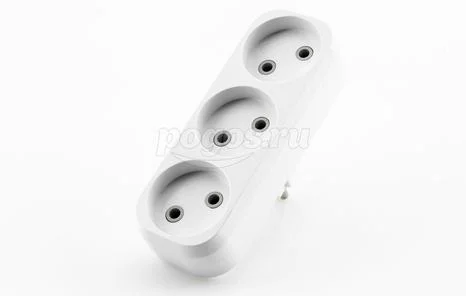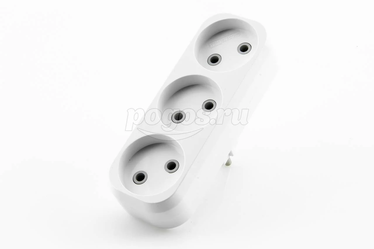 Плоский разветвитель 3 гнезда, заземление, белый 6А 250В - простое и удобное устройство для разветвления одной стационарной розетки и возможности подключения одновременно двух бытовых электроприборов.