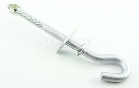 Крюк монтажный сквозной B-20/240 применяется для крепления анкерных или поддерживающих зажимов на железобетонных, металлических или деревянных опорах с монтажными отверстиями.