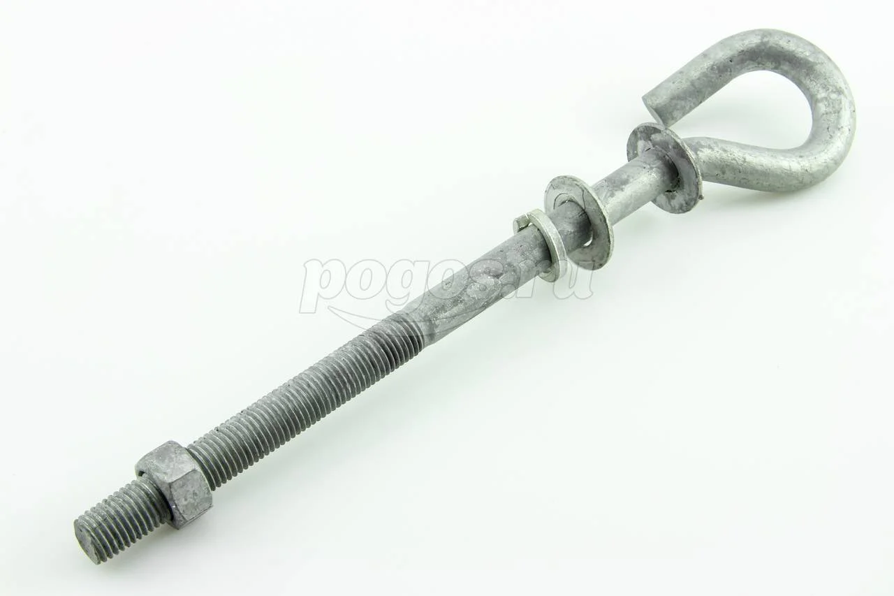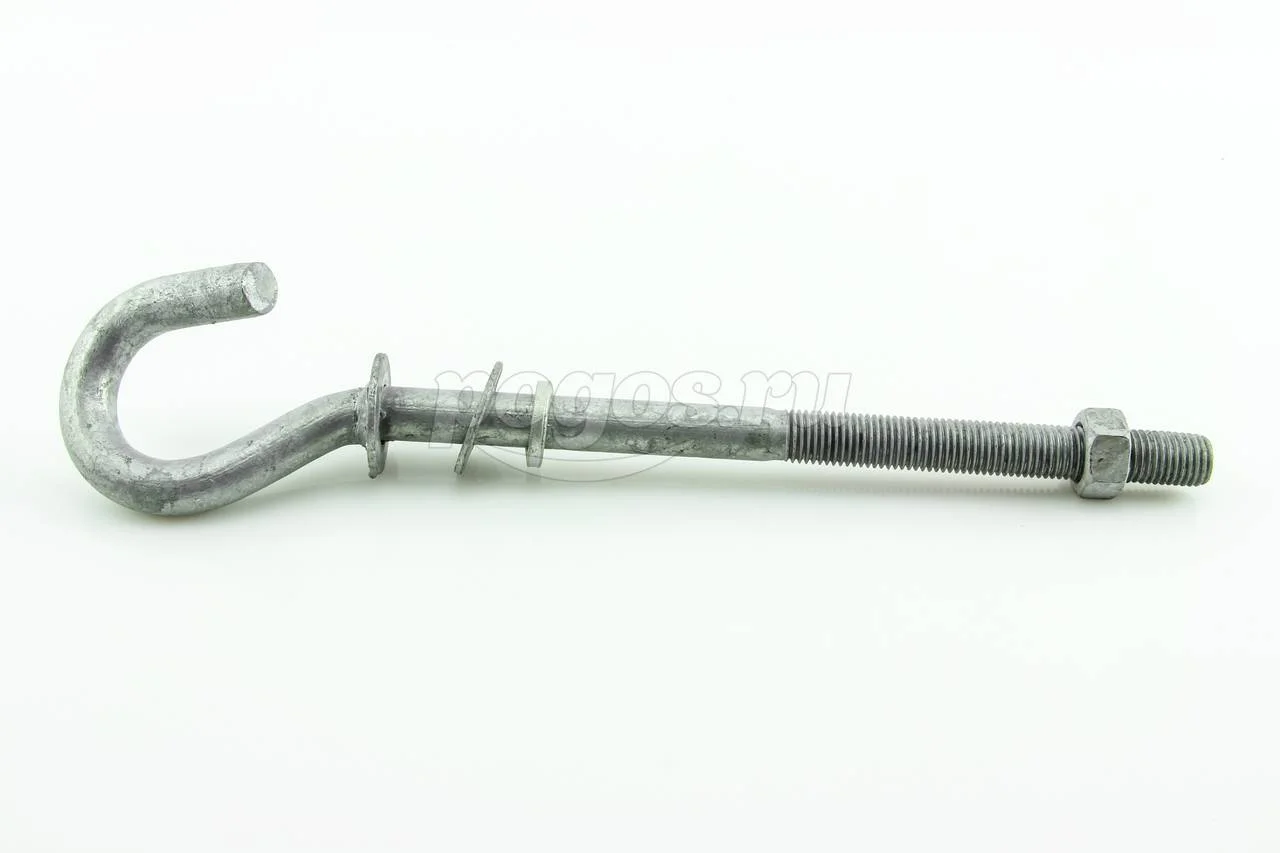 Крюк монтажный сквозной B-16/240 применяется для крепления анкерных или поддерживающих зажимов на железобетонных, металлических или деревянных опорах с монтажными отверстиями.