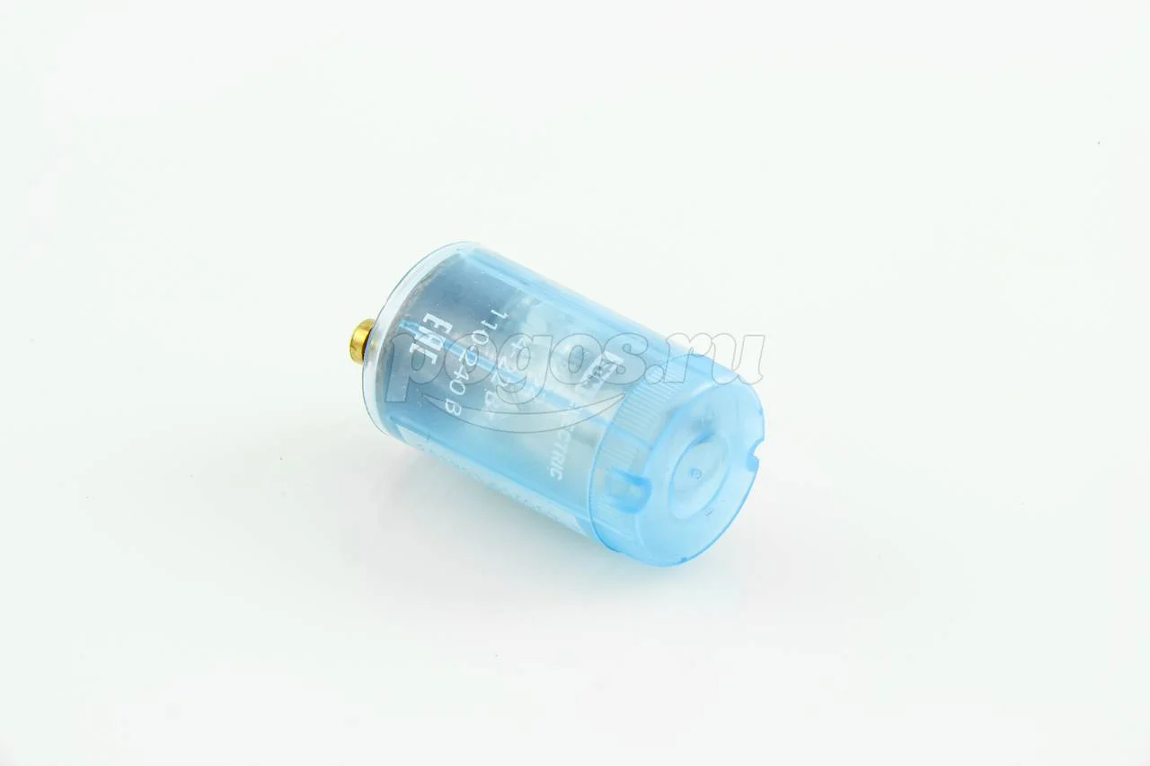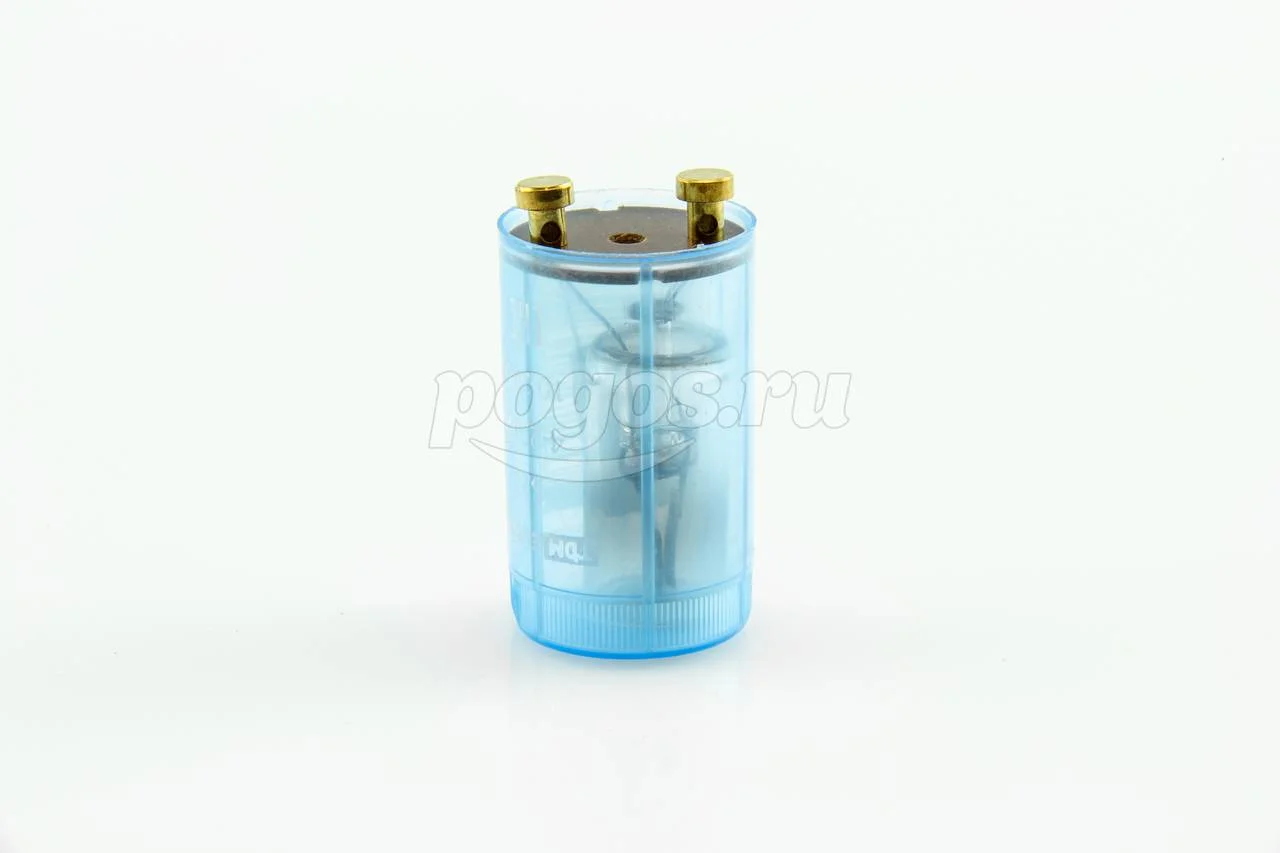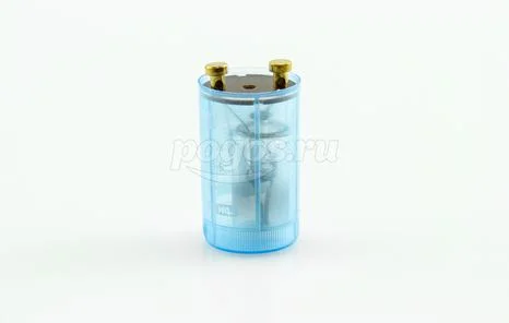 Стартер тлеющего разряда представляет собой лампу с электродами в виде биметаллических пластин, расположенную в пластиковом корпусе с высококачественным помехоподавляющим конденсатором.