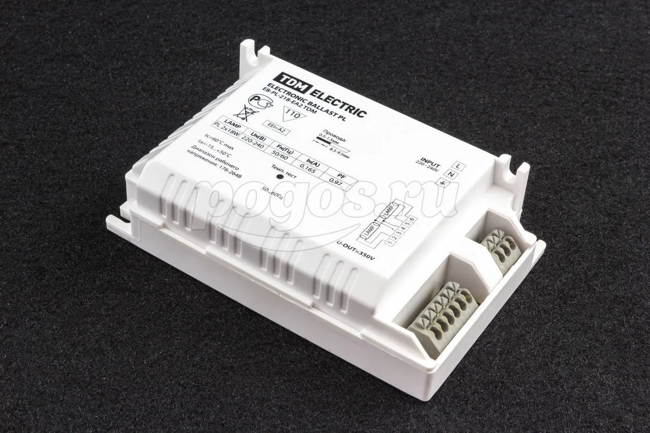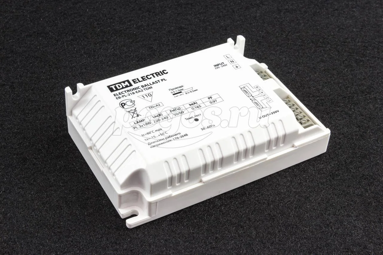 Электронный пускорегулирующий аппарат TDM EB-PL-218-EA2 SQ0339-0005 - это надежное устройство, предназначенное для комплектации светильников, рассчитанных на работу с двумя компактными люминесцентными лампами мощностью 18 Вт и с цоколем GX24q.
