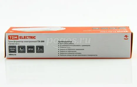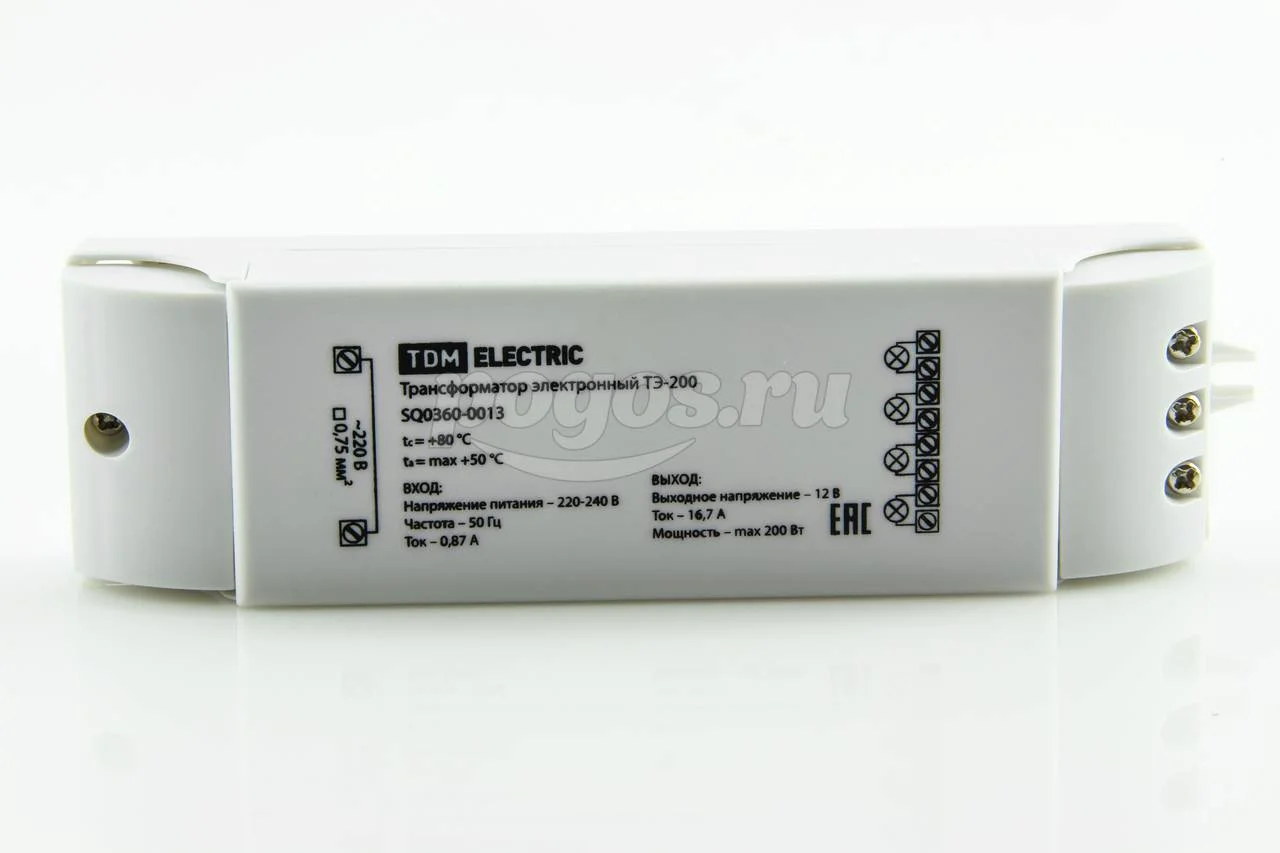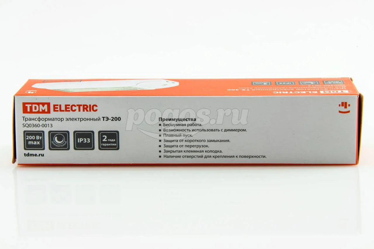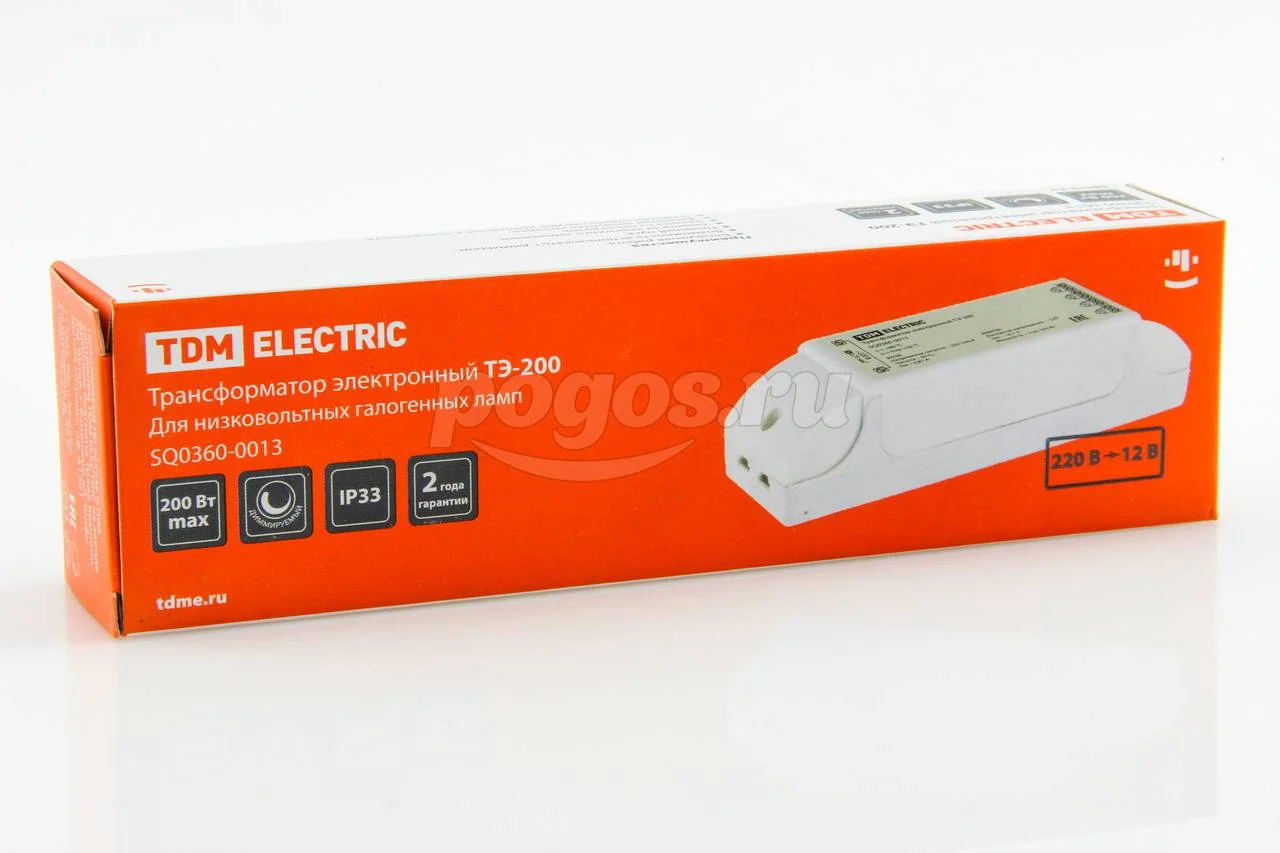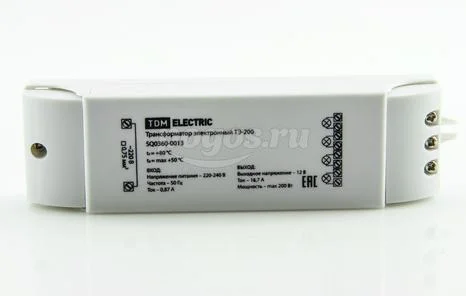 Электронный трансформатор TDM ТЭ-200 SQ0360-0013 обеспечивает оптимальную и безопасную работу низковольтных ламп.
