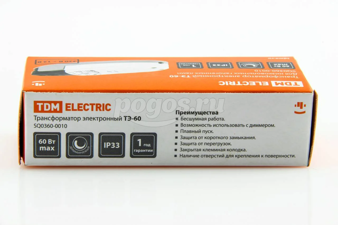 Электронный трансформатор TDM ТЭ-60 SQ0360-0010 является надежным и безопасным прибором, обеспечивающим стабильную работу низковольтных ламп.