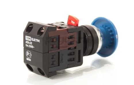 Кнопка AEA-22, 22, "Грибок" синий, 230В, 1з+1р, TDM