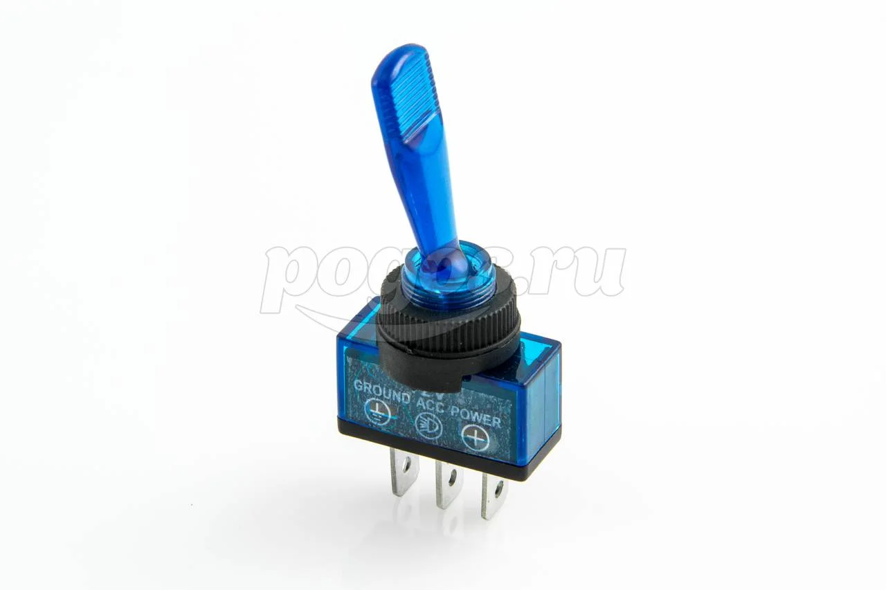 Тумблер 12V 20А (3c) ON-OFF однополюсный с синей подсветкой (ASW-13D) предназначен для коммутации электрических цепей напряжением 12В.