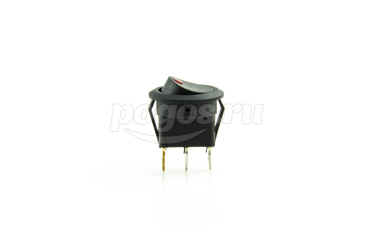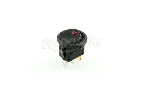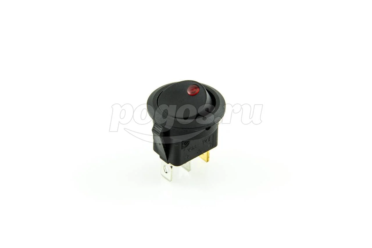 Выключатель клавишный круглый 12V 16А (3с) ON-OFF черный с красной LED подсветкой (RWB-215, MIRS-101Е-8С/D).