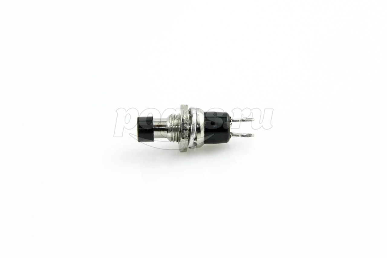Выключатель-кнопка маталл 220V 2А (2с) (ON)-OFF Ш7.2 черная Micro (RWD-301, PBS-10B) предопределена для коммутации электро цепей переменного тока напряжением до 250В методом включения-выключения питающего провода.