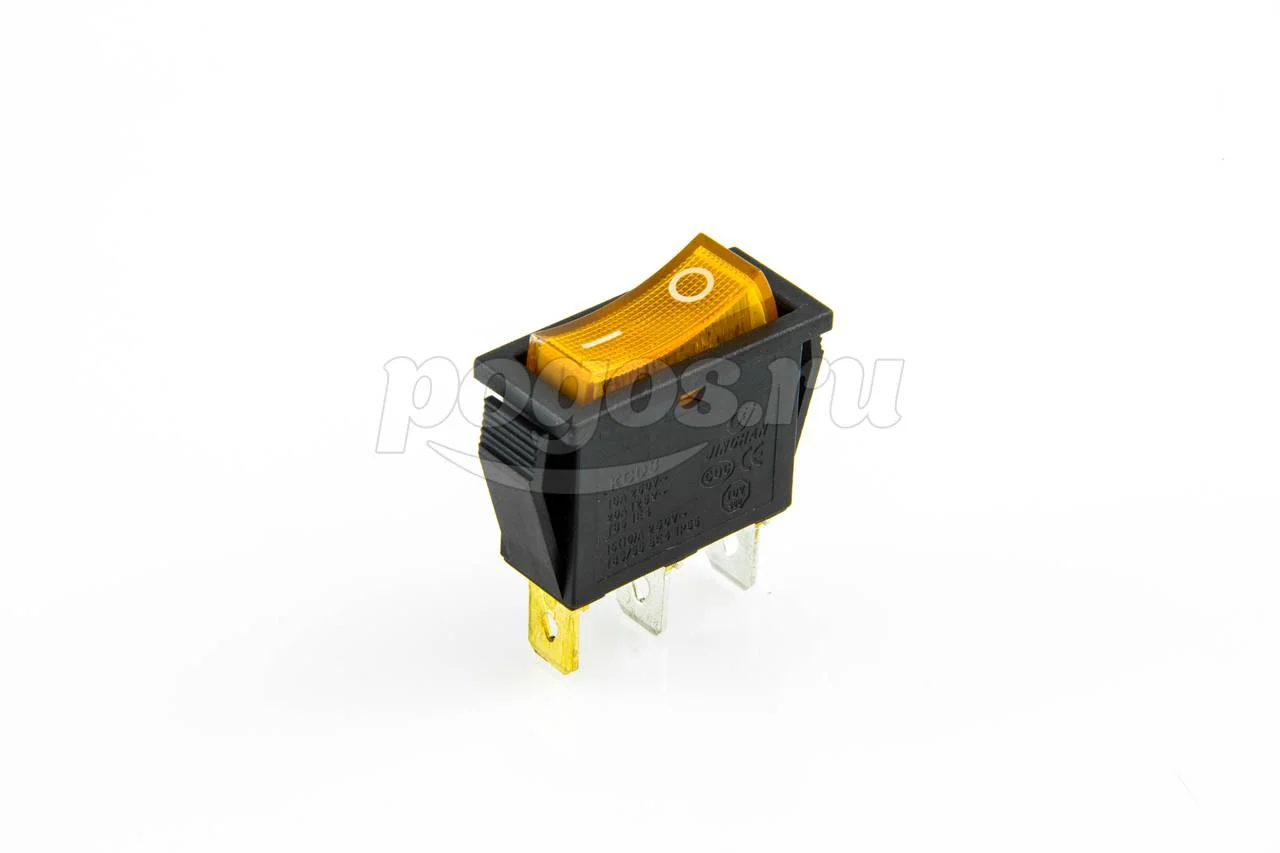 Выключатель клавишный 250V 15А (3с) ON-OFF желтый с подсветкой (RWB-404, SC-791, IRS-101-1C).