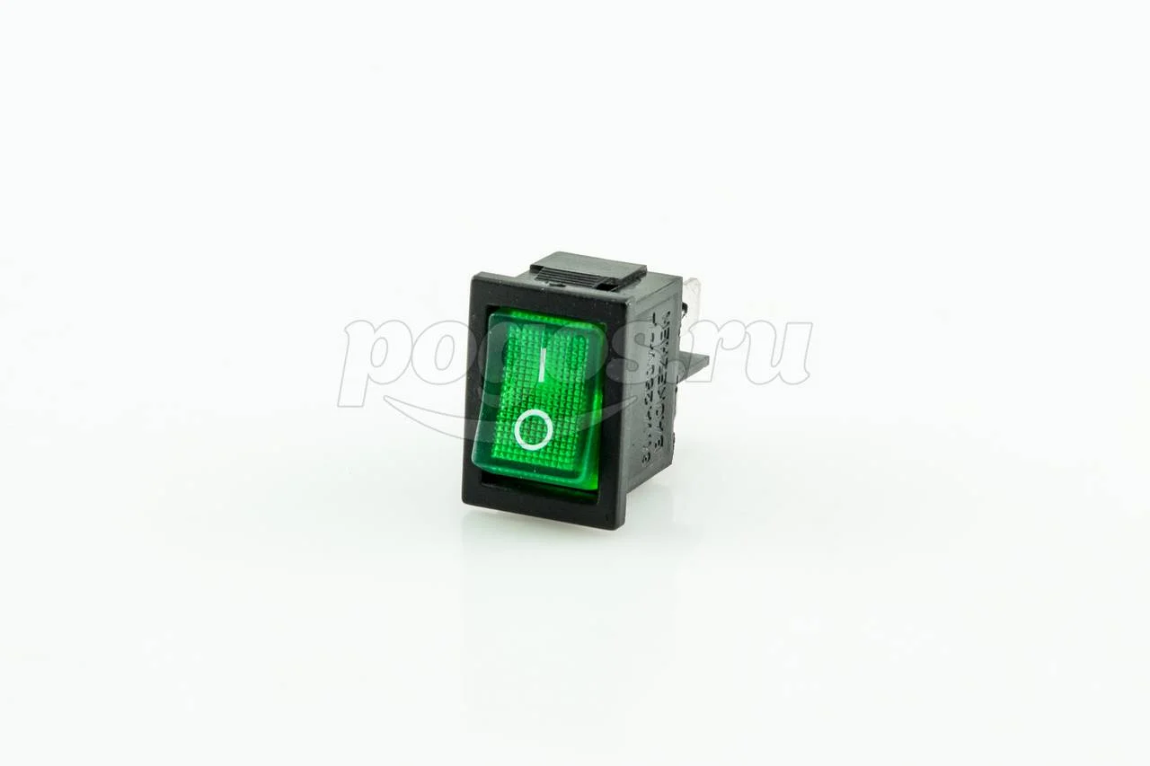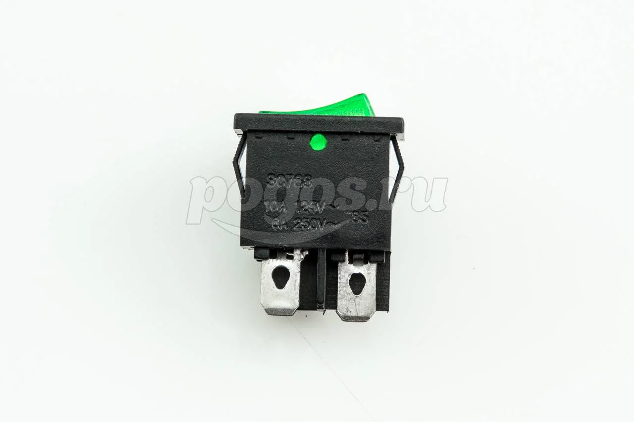 Выключатель квадратный (4с) 10А 125В, 6А 250В, зеленый, SC767, артикул: