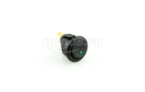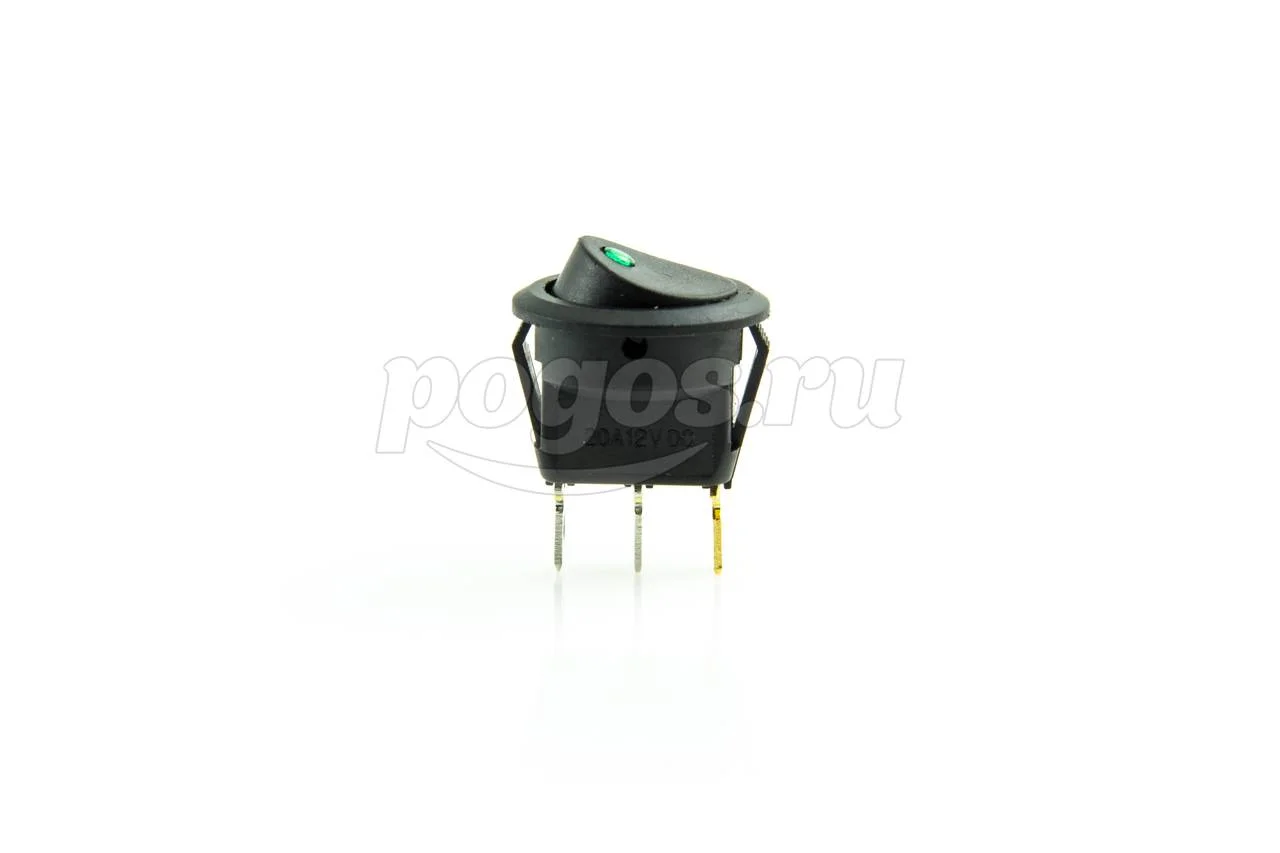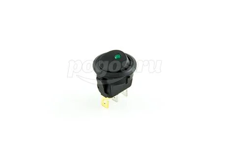 Выключатель клавишный круглый 12V 16А (3с) ON-OFF черный с зеленой LED подсветкой (RWB-215, MIRS-101Е-8С/D).
