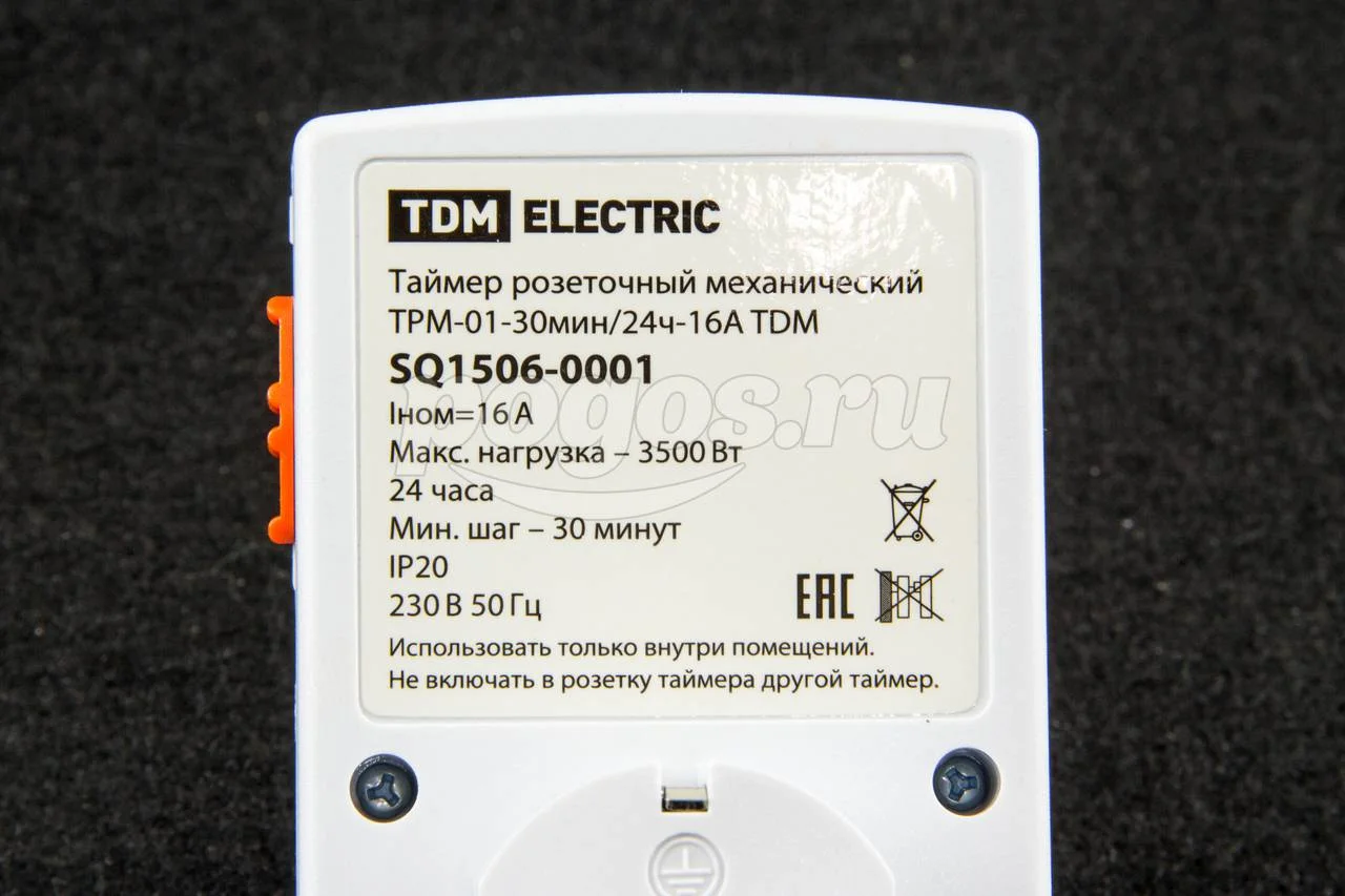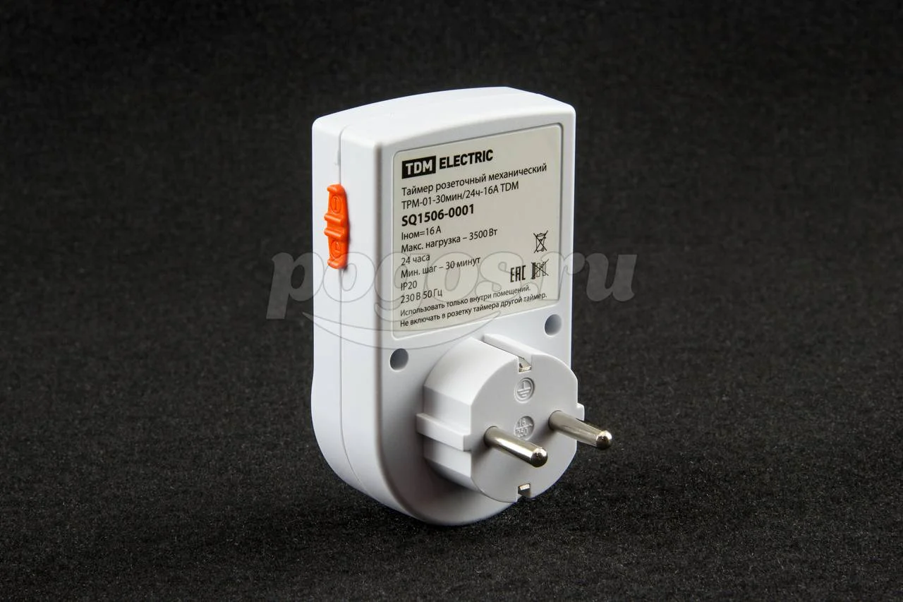 Розеточный механический таймер 16А суточный, интервал 30мин TDM