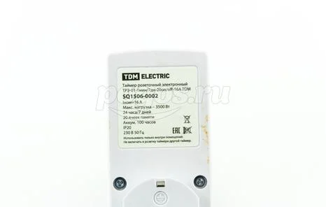Розетка-таймер 16А недельный, интервал 1мин TDM, артикул: SQ1506-0002
