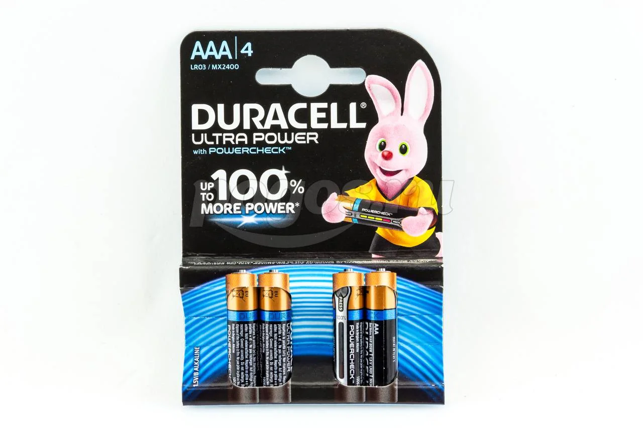 Батарейка AAА (мизинчиковая) 4шт DURACELL, артикул: LR03-4BL ULTRA POWER