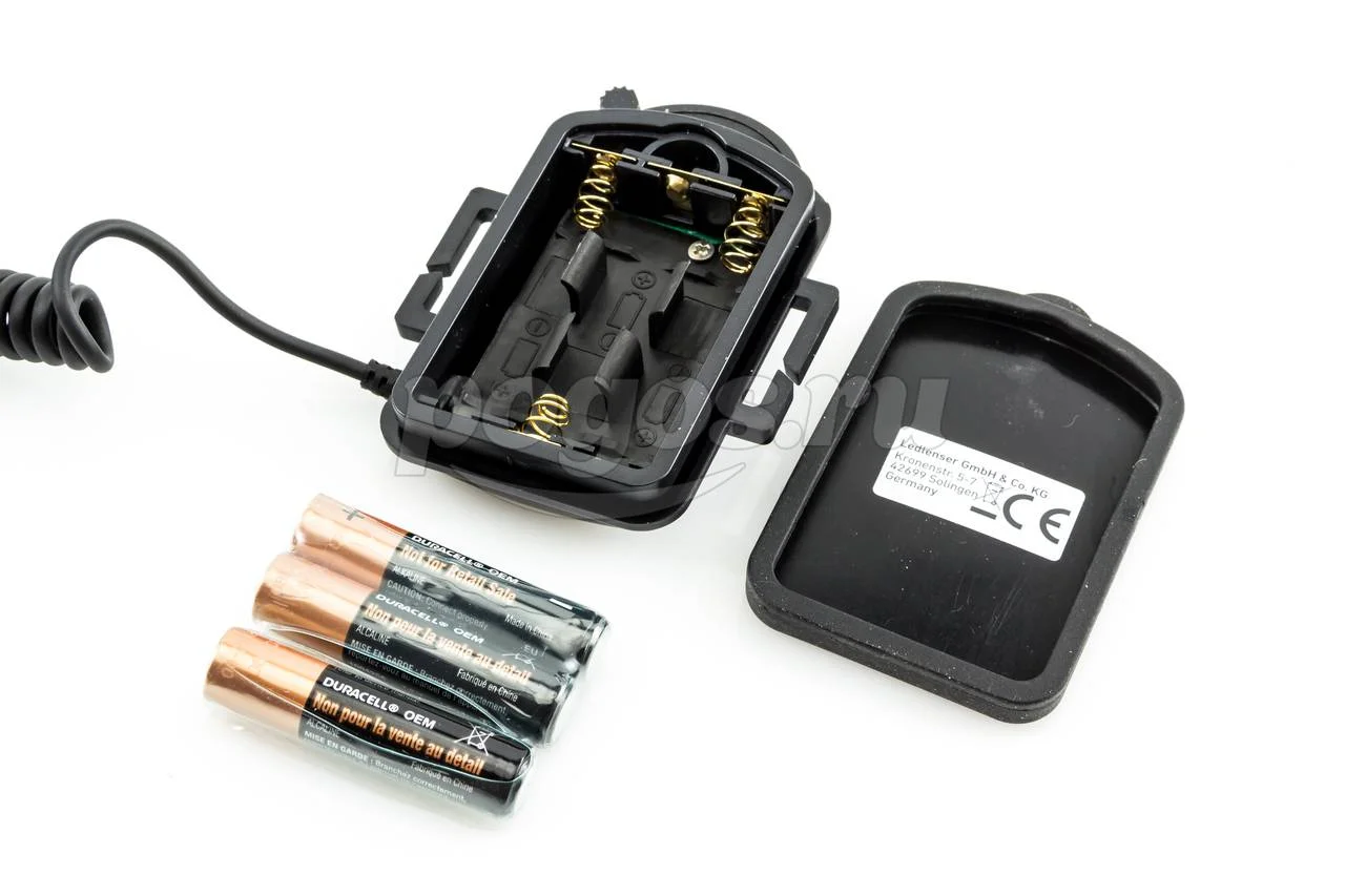 Светодиод и система линз находятся в фронтальном блоке, а батарейный отсек расположен в затылочной части.