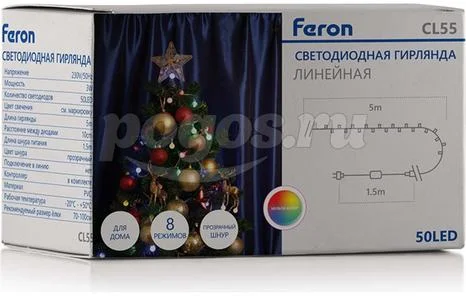 Гирлянда FERON 230V 50 LED мульти, длина 5 м, IP20, шнур 1,5м , CL55 26761, артикул: 26761
