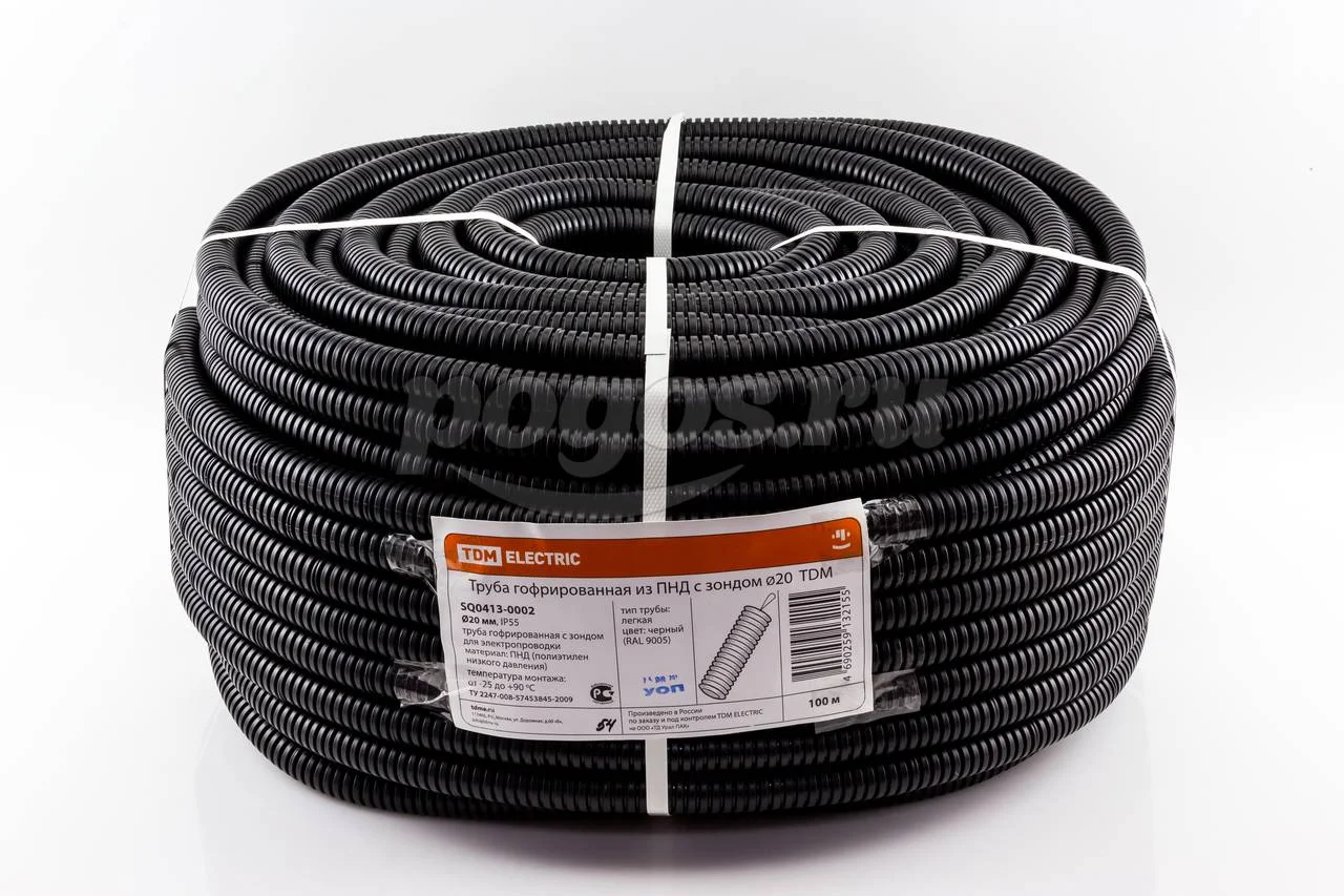Труба гофрированная ПНД 20мм с зондом чер(бухта 100м) , артикул: SQ0413-0002