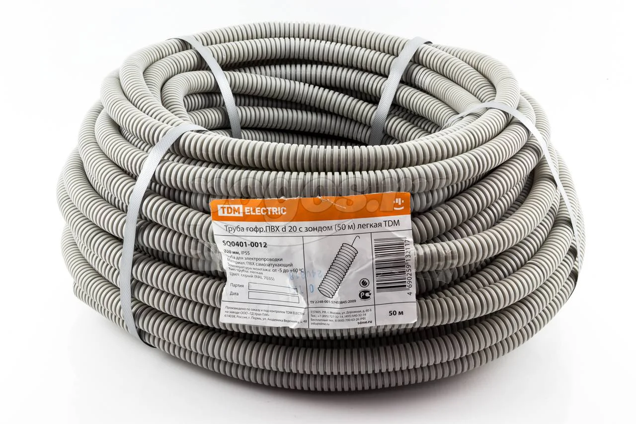 Труба гофрированная ПВХ 20мм с зондом, бухта 50м, артикул: SQ0401-0012