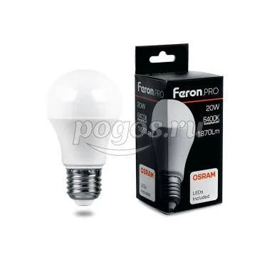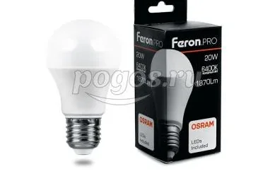 Лампа светодиодная, 20W 230V E27 6400K A65 FERON, артикул: 38043