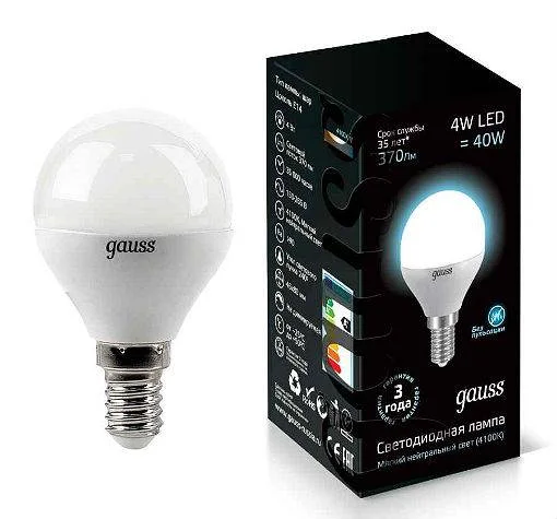 Лампа светодиодная GAUSS E14 4W 4100K, артикул: EB105101204