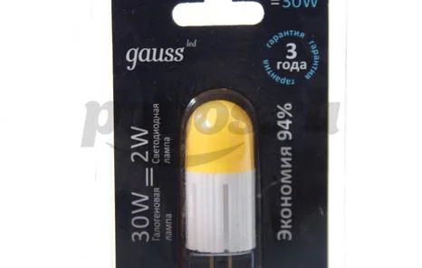 Световые характеристики: CRI : 85. Световой поток : 93 Лм. Угол освещения : 242°. Эквивалент мощности : 10 Вт. Цветовая температура : 4327 К. Свет : дневной. Внешний вид: Филаментная : нет. Тип цоколя : G4. Форма колбы : Капсула (JC). Матовая : да. Параметры питания: Напряжение : 220 В. Мощность : 2 Вт. Рабочее напряжение : 100-240 В. Эксплуатационные характеристики: Артикул: YS107307202. Название: Gauss LED G4 230V 2W 4100K. Производитель : Gauss. Страна бренда : Россия. Страна производства : Китай. Тип : Лампа. Диммирование : нет. Срок службы : 50000 ч. Гарантия : 3 года. Совместимость с выключателями с подсветкой : нет. Габариты: Высота : 30 мм. Диаметр : 14 мм. Тестирование: Код lamptest.ru : 443. Протестировано в : lamptest.ru. Протестированный CRI : 84.7. Протестированная пульсация : 123%. Протестированный световой поток : 93.4 Лм. Протестированный эквивалент мощности : 10 Вт. Протестированная цветовая температура : 4327 К. Пр