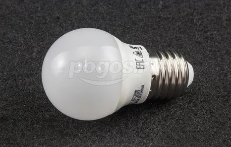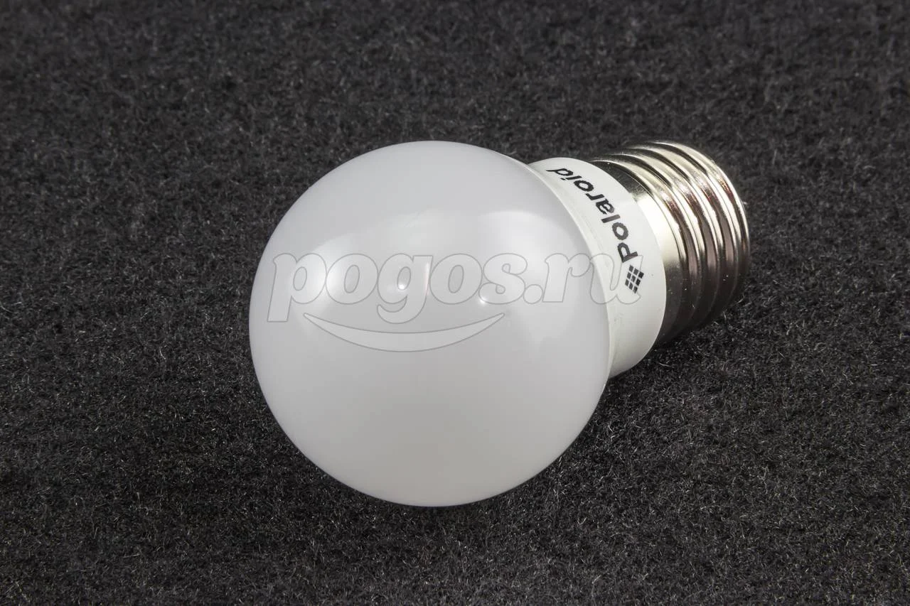 Лампа светодиодная Polaroid PL45-4273, габариты-H-9/L-6/W-6, цвет-тепло, цоколь-E27, рабочее напряжение-220/240, мощность Вт-4w, световой поток-350лм.