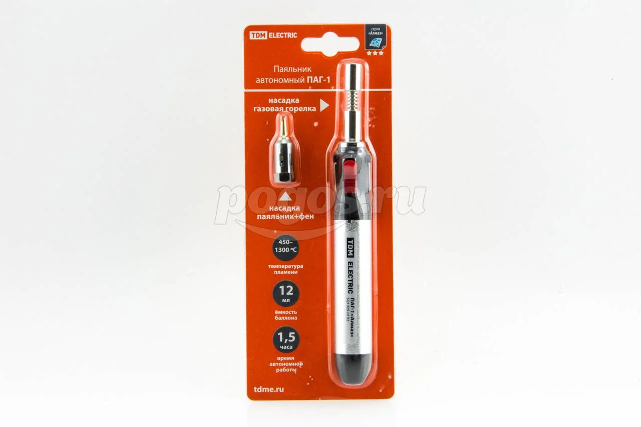 Паяльник автономный газовый ПАГ-1, насадки газовая горелка,паяльник+фен,12мл Алмаз TDM, артикул: SQ1025-0102