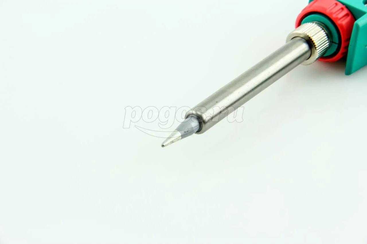 Паяльник имеет удобную форму ручки, материалом которой служит ударопрочный пластик.