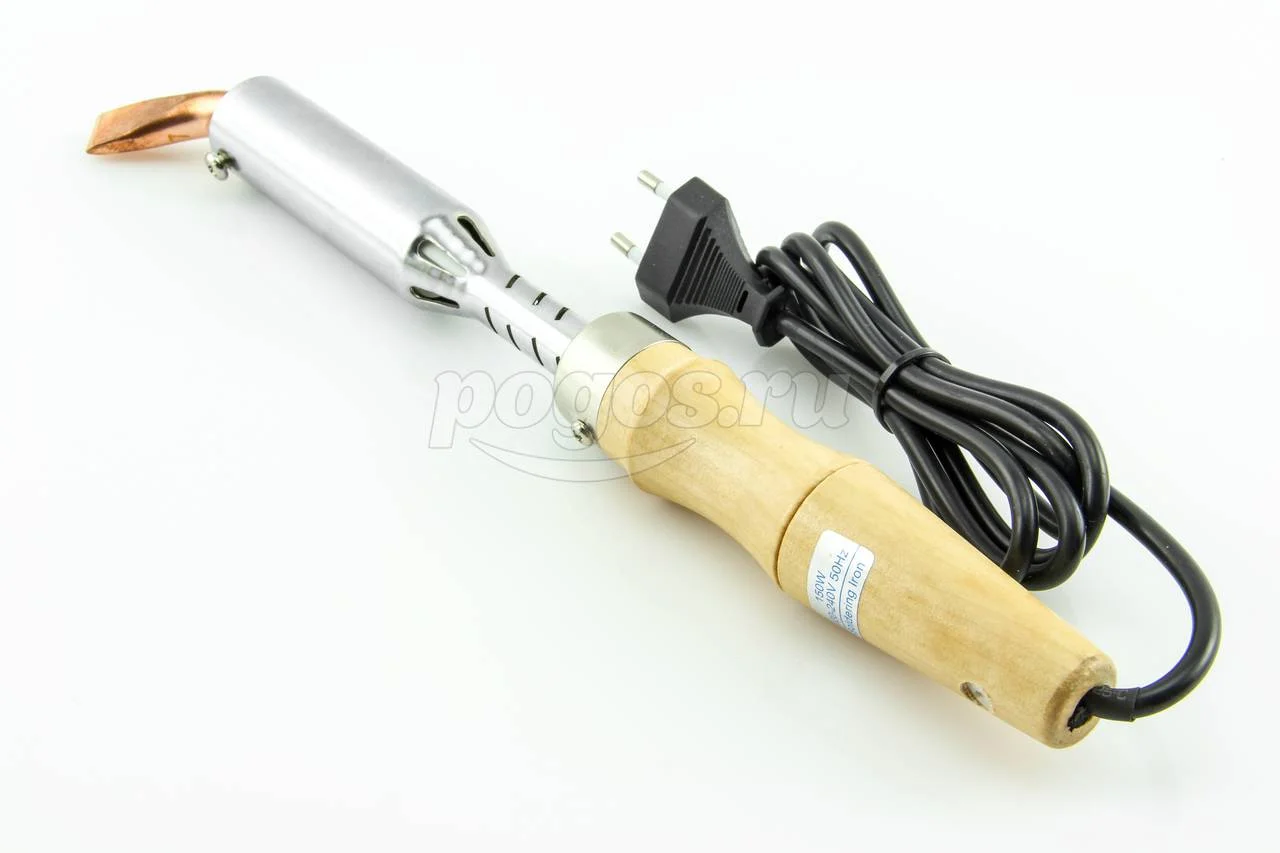 TLW 150 Электрический паяльник мощностью 150вт/ 220 вольт с деревянной рукояткой, нихромовым нагревателем и медным загнутым жалом в форме лопатки.