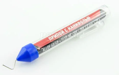 Припой с канифолью REXANT представляет собой проволоку (диаметром 1 мм) из сплава олова (60%) и свинца (40%).