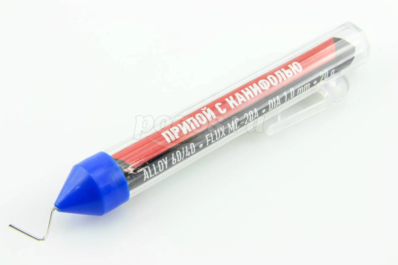 Припой с канифолью ПОС-60 Sn60 Pb40 Flux 2.2% 20гр.d=1mm REXANT, артикул: 09-3103