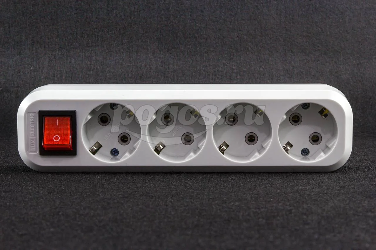 Колодка розеточная 4гн 2П+3 16А с выключателем белая TDM
