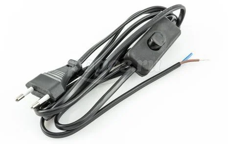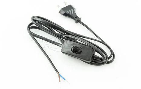 Шнур с выключателем и плоской вилкой ШУ01В ШВВП 2х75мм 2м черн.TDM