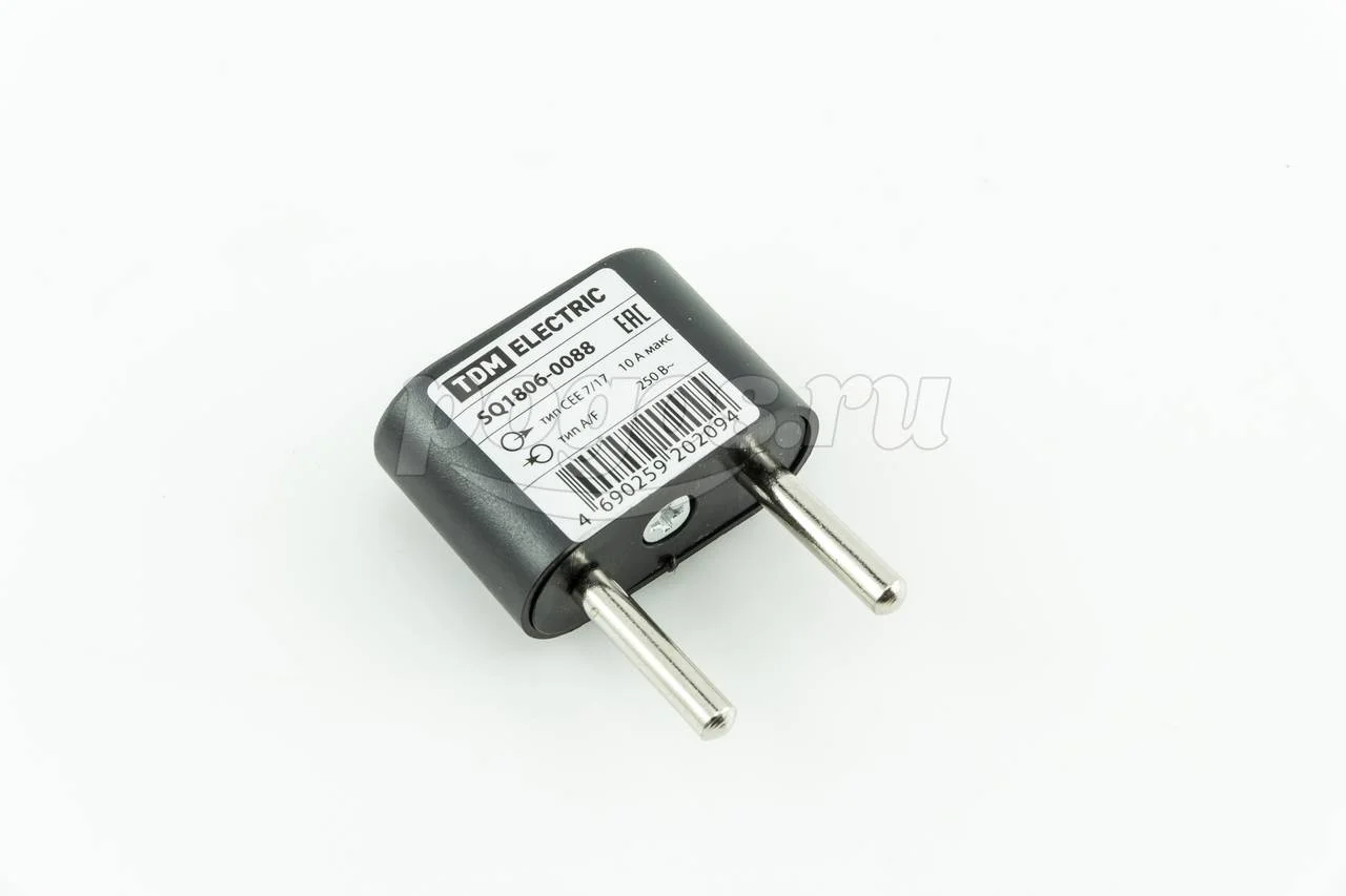 Вилка ТДМ SQ1806-0088 переходник тип CEE 7/17 - тип А/F плоский 10А макс. 250В черный