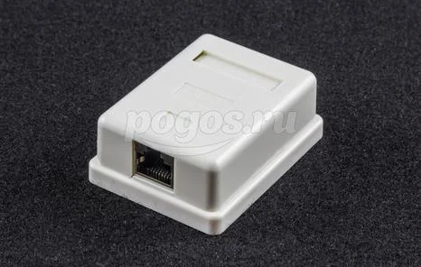 Розетка содержит одно экранированное гнездо 5 категории RJ- 45 под разъем 8Р-8С (8 посадочных мест и 8 контактов).