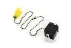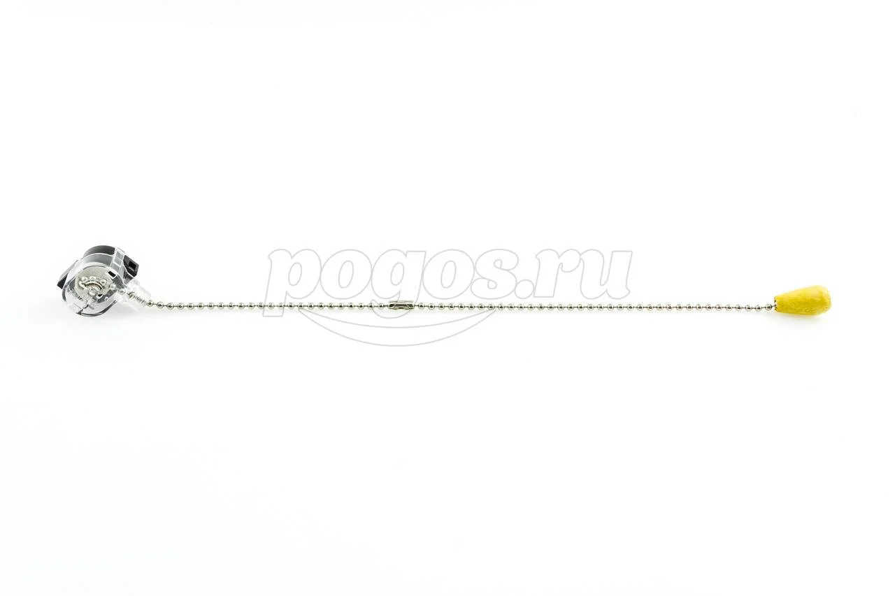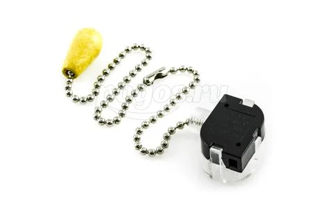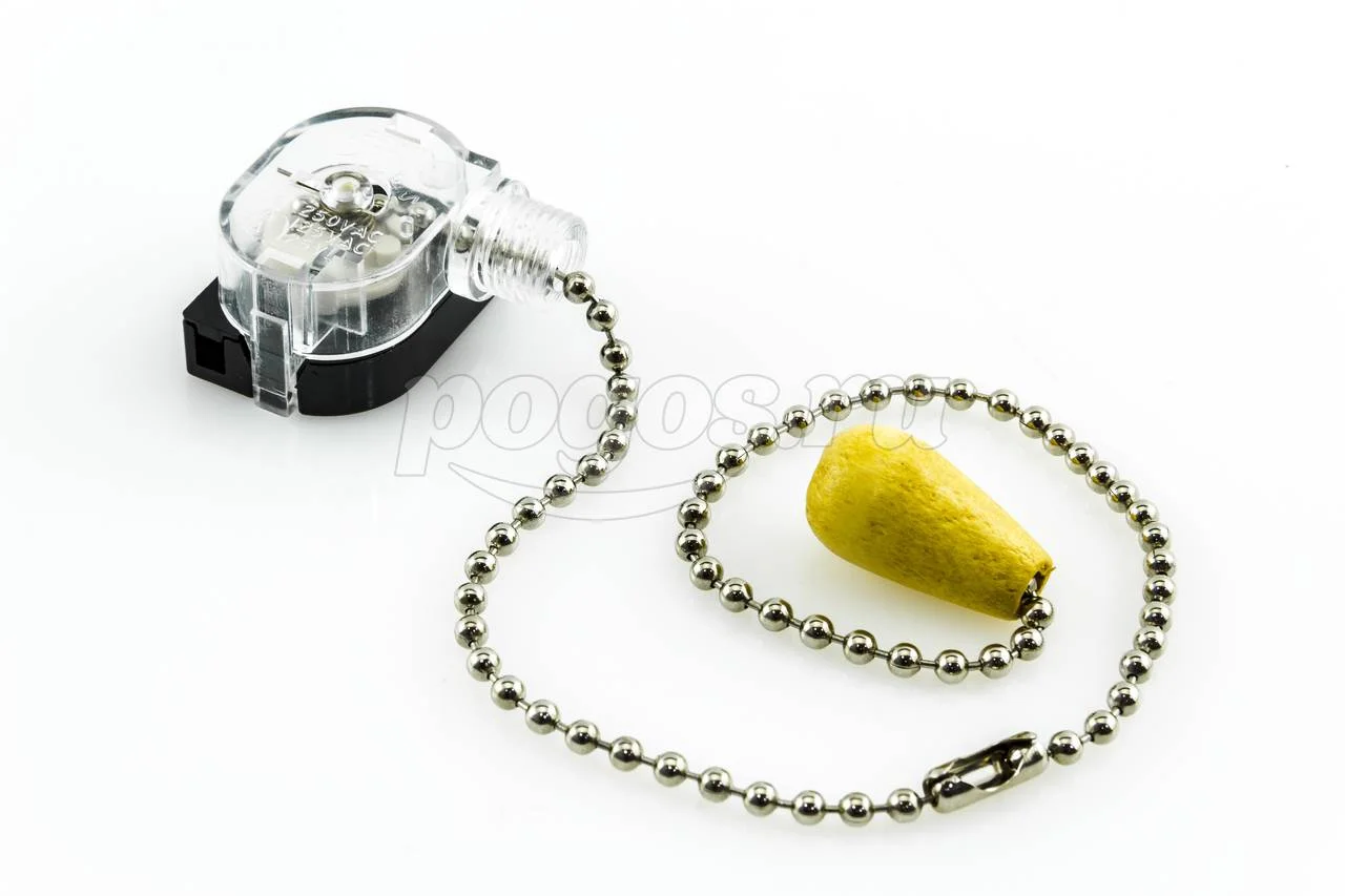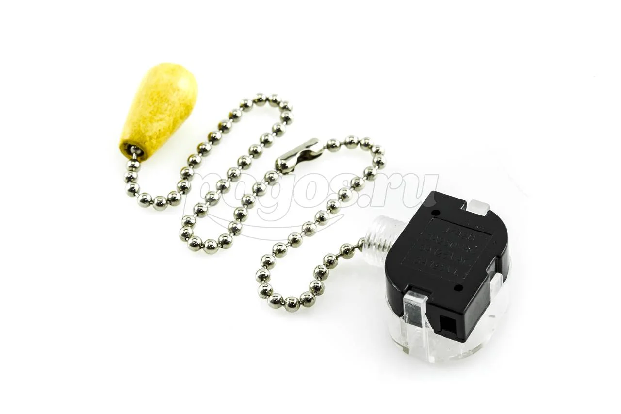 Выключатель для настенного светильника с хромированной цепочкой и деревянным наконечником.
