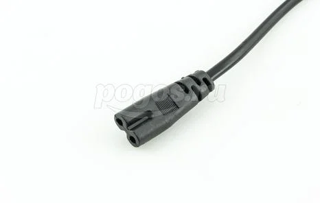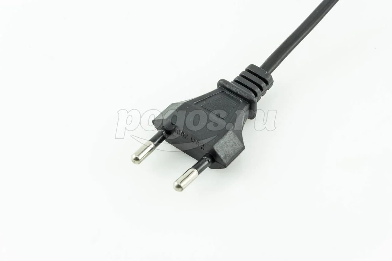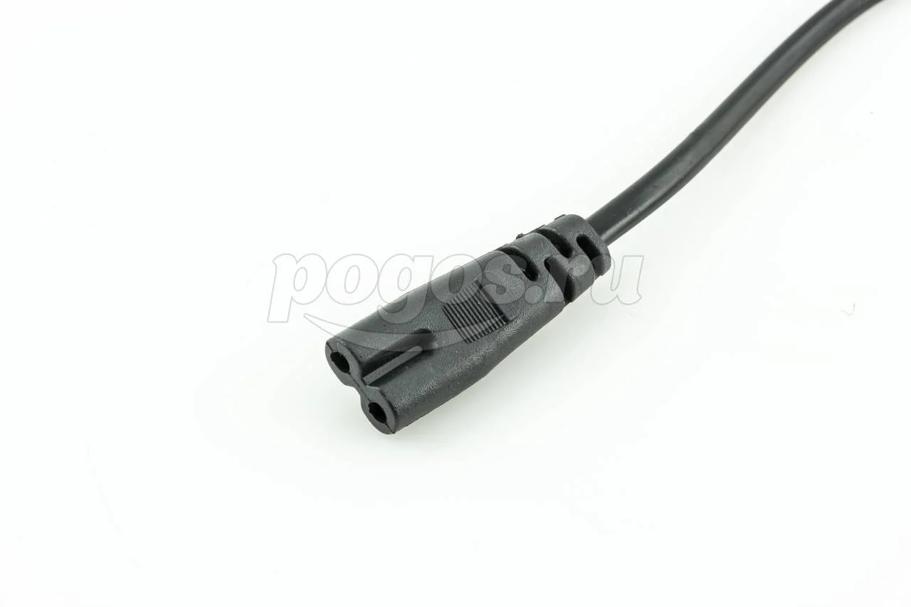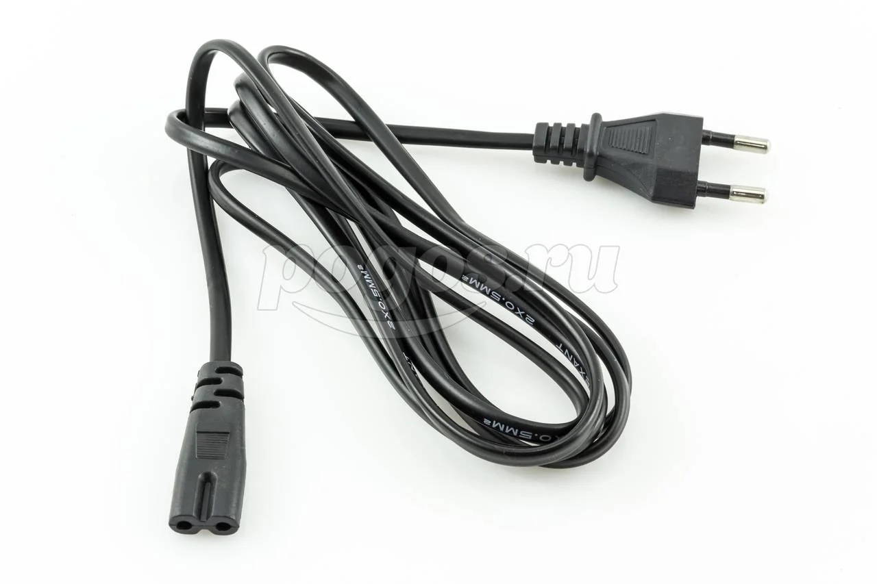 Данный сетевой шнур (IEC cord) оснащен с одной стороны литой неразборной плоской вилкой (Евро), с другой литым гнездовым неполяризованным разъёмом типа C7 (евро-разъём) и двухжильным проводом с сечением жил 0.5мм².