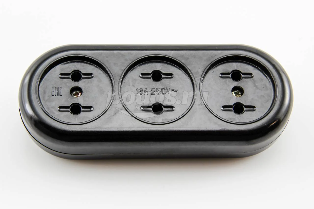 Колодка удлинителя б/з 3гн 16А карболит Ретро TDM