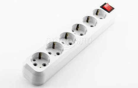 Колодка розеточная 6гн 2П+3 16А с выключателем белая TDM