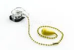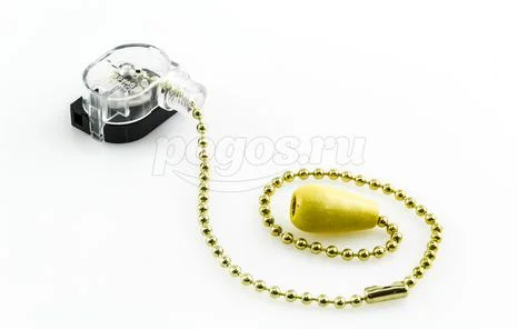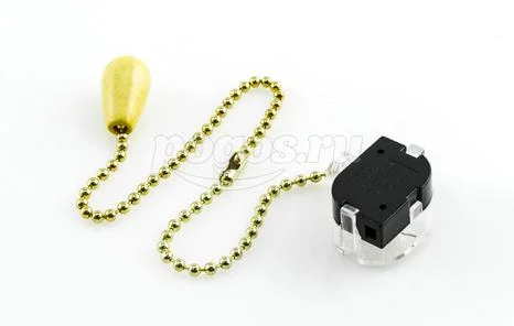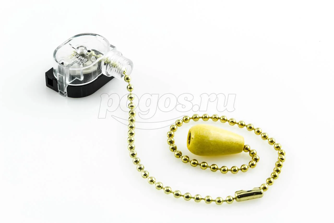 Выключатель для настенного светильника с хромированной цепочкой и деревянным наконечником.