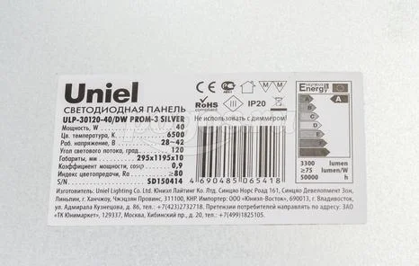Потолочный светильник LED 40W 295х1195х10мм серебристый Uniel