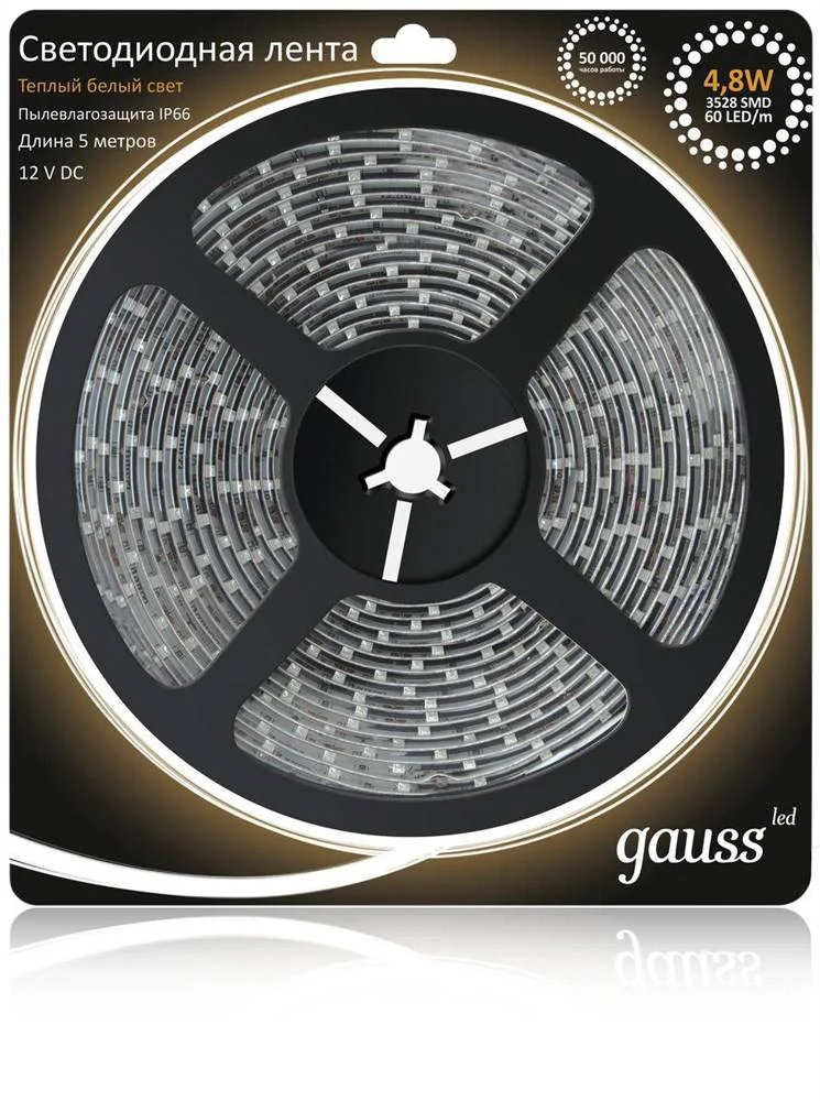 Лента светодиодная 4,8W 12V 3528/60 теплый GAUSS, артикул: EB311000105