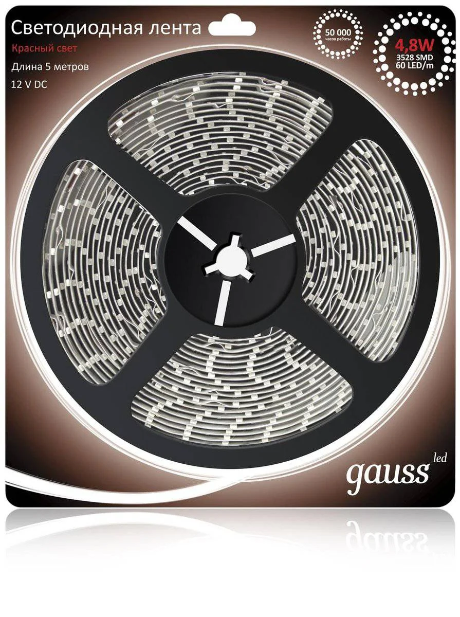 Лента светодиодная 4,8W 12V 3528/60 красн. GAUSS, артикул: EB312000705