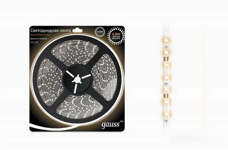 Лента светодиодная 4,8W 12V 3528/60 теплый GAUSS, артикул: EB312000105