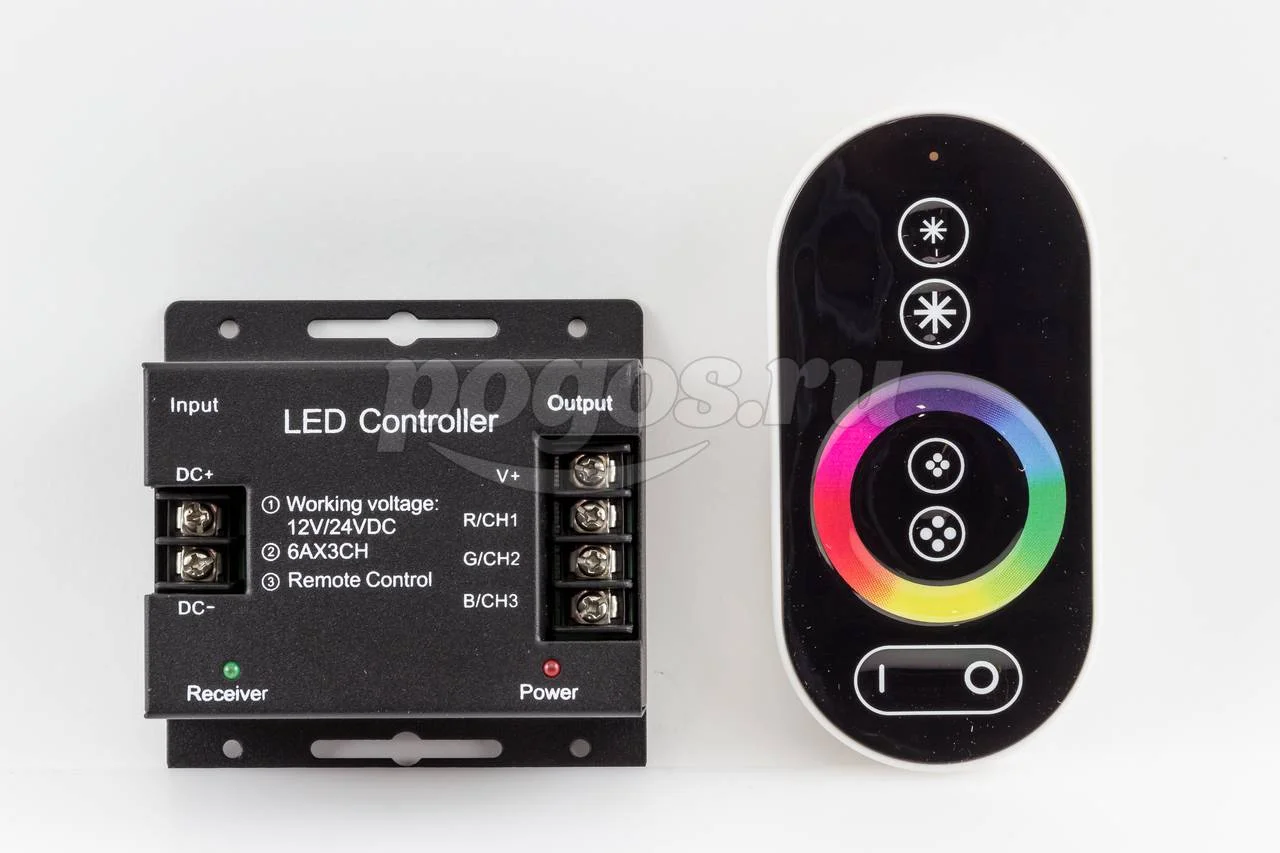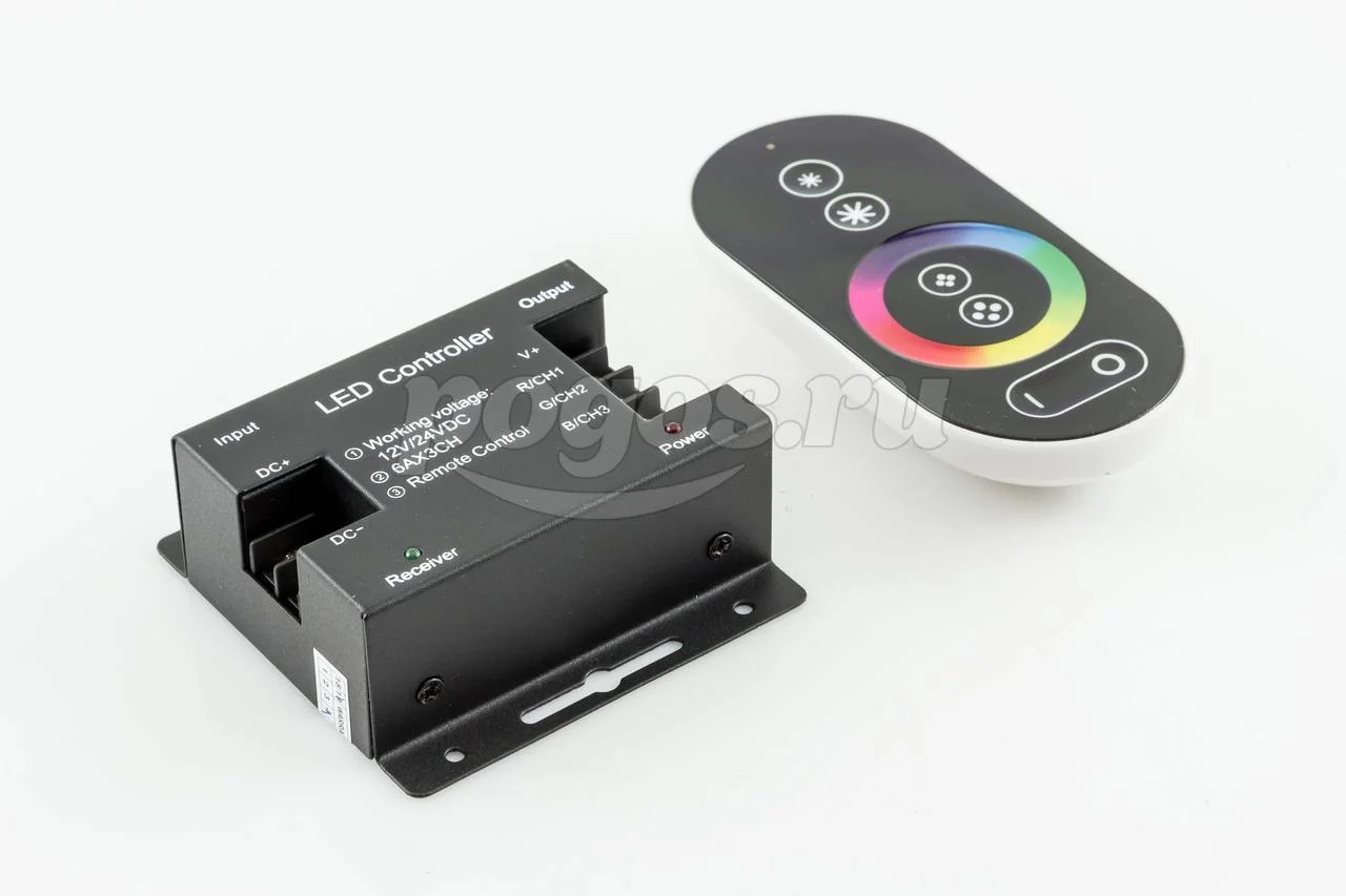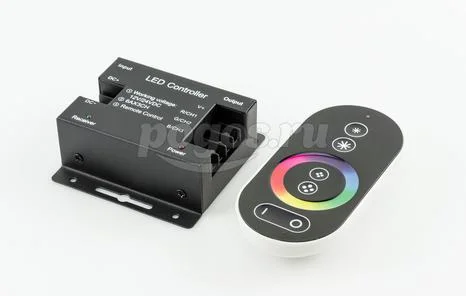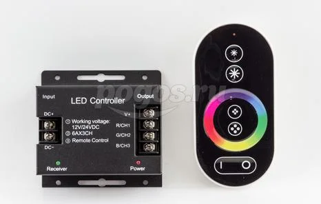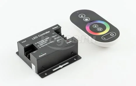 Компактный и вместе с тем мощный RGB-контроллер для светодиодной ленты с радиочастотным пультом управления позволяет без дополнительных усилителей подключать суммарную нагрузку до 24А.
