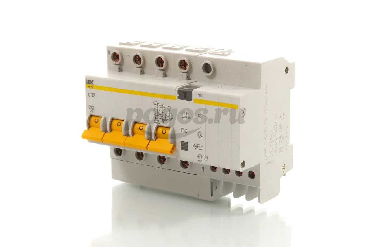 Автоматический выключатель дифференциального тока 4п 6,5мод.C32A 30mA тип AС 4,5kA АД-14 ИЭК, артикул: 22290