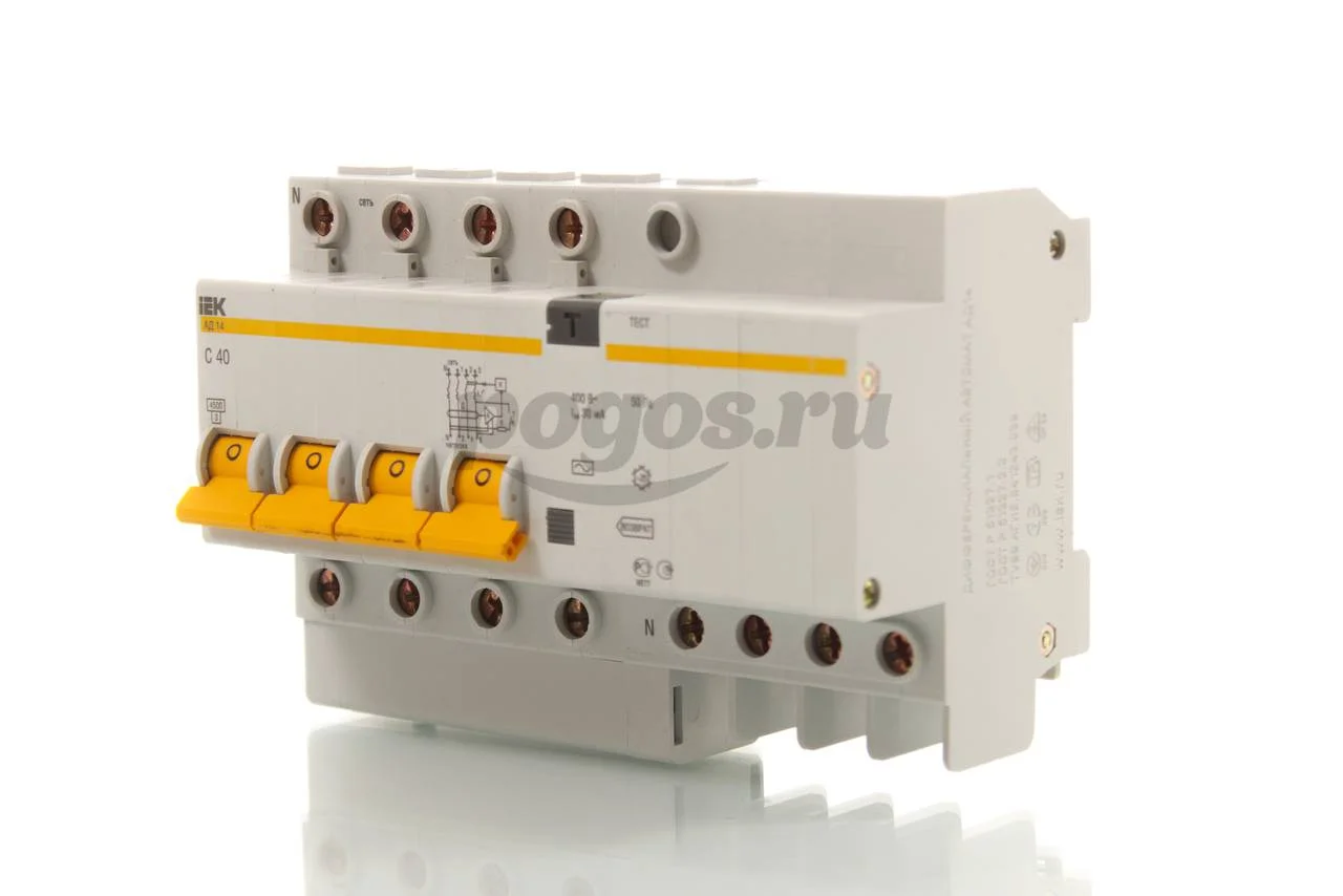 Автоматический выключатель дифференциального тока 4п 6,5мод. C40A 30mA тип AС 4,5kA АД-14 ИЭК
