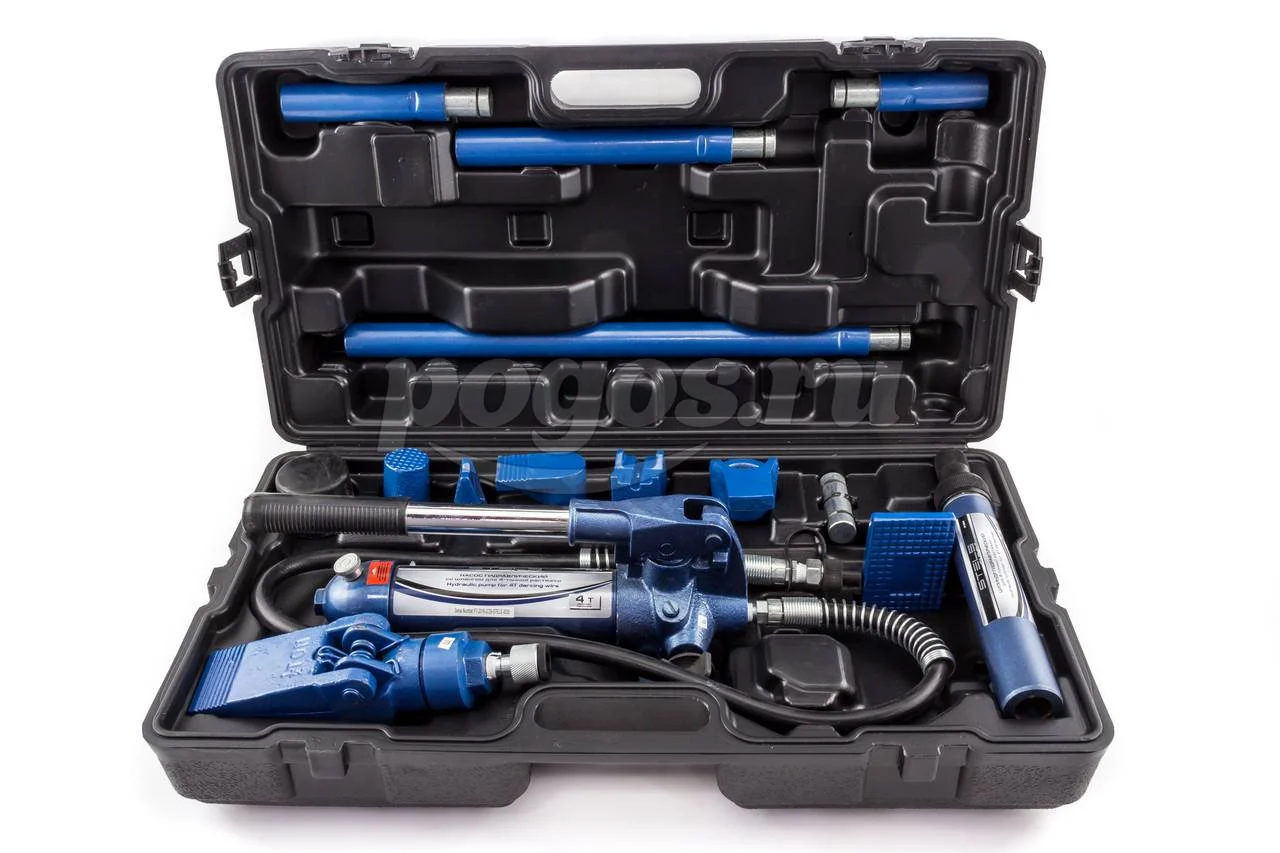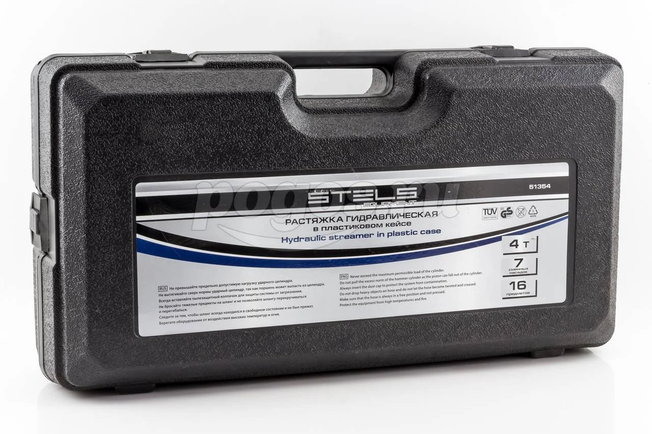 Гидравлическая растяжка STELS 4 т 16 предметов пластиковый кейс 51354 предназначен для проведения рихтовочных и кузовных работ.