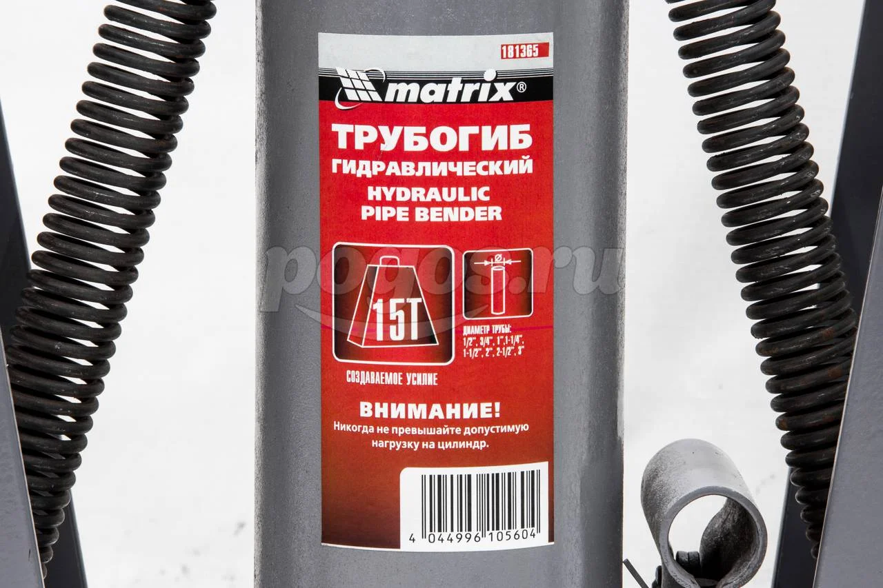 Гидравлический трубогиб с башмаками 1/2"-3", 15т MATRIX 181365 позволяет изгибать трубы из стали без необходимости их предварительного нагрева.