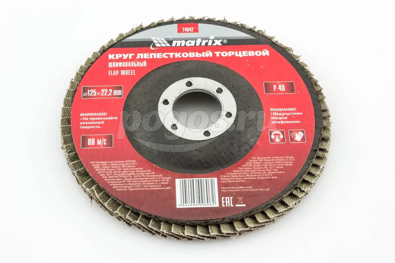 Диск лепестковый MATRIX Р 40 125х22.2мм, артикул: 74042